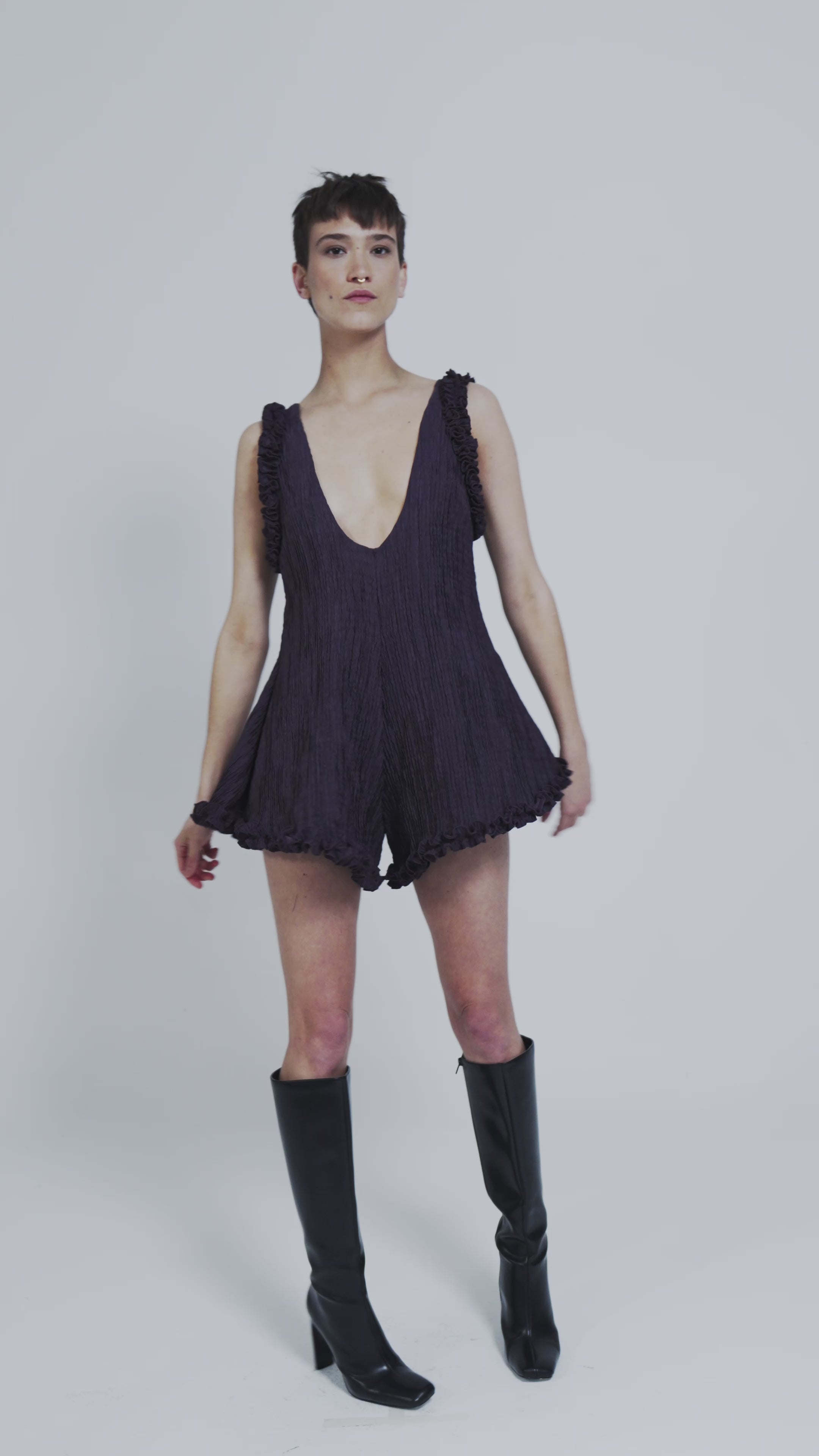 O maior hit do verão na década de 30, o Macaquinho Suspiro é quase um abraço nostálgico com a teatralidade presente no toque do tecido, malha plissê. Alças com detalhes, decote em U valorizando o colo e babado godê. A malha plissê marca a cintura da peça e trás um drama especial para peça, além de possuir forro em malha fria extremamente confortável e delicado.